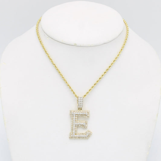 14K Inicial Name Pendant With Ice Chain Yellow Gold