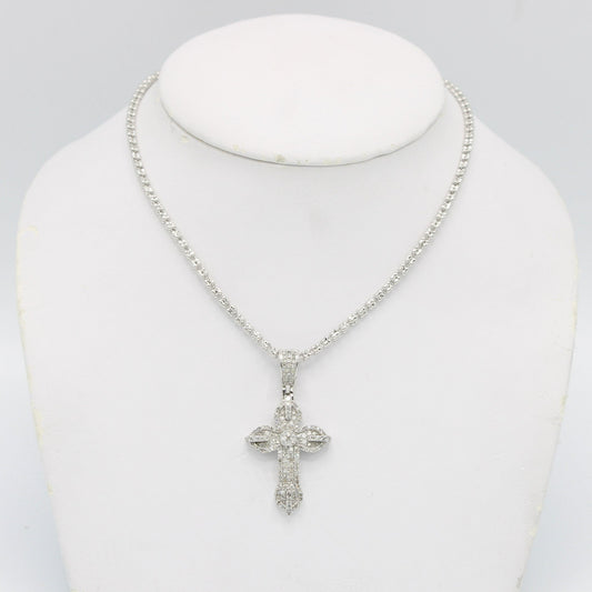 14K VS Diamond Cross Pendant With Ice Chain White Gold