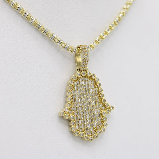 VS Diamond / Baguette Hamsa Pendant with Ice Chain Yellow Gold