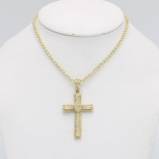 VS Diamond Cross Pendant with Ice Chain Yellow Gold