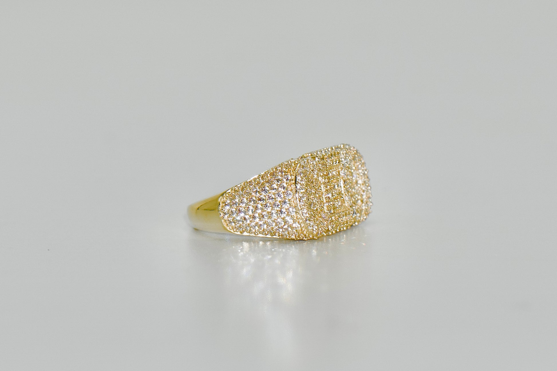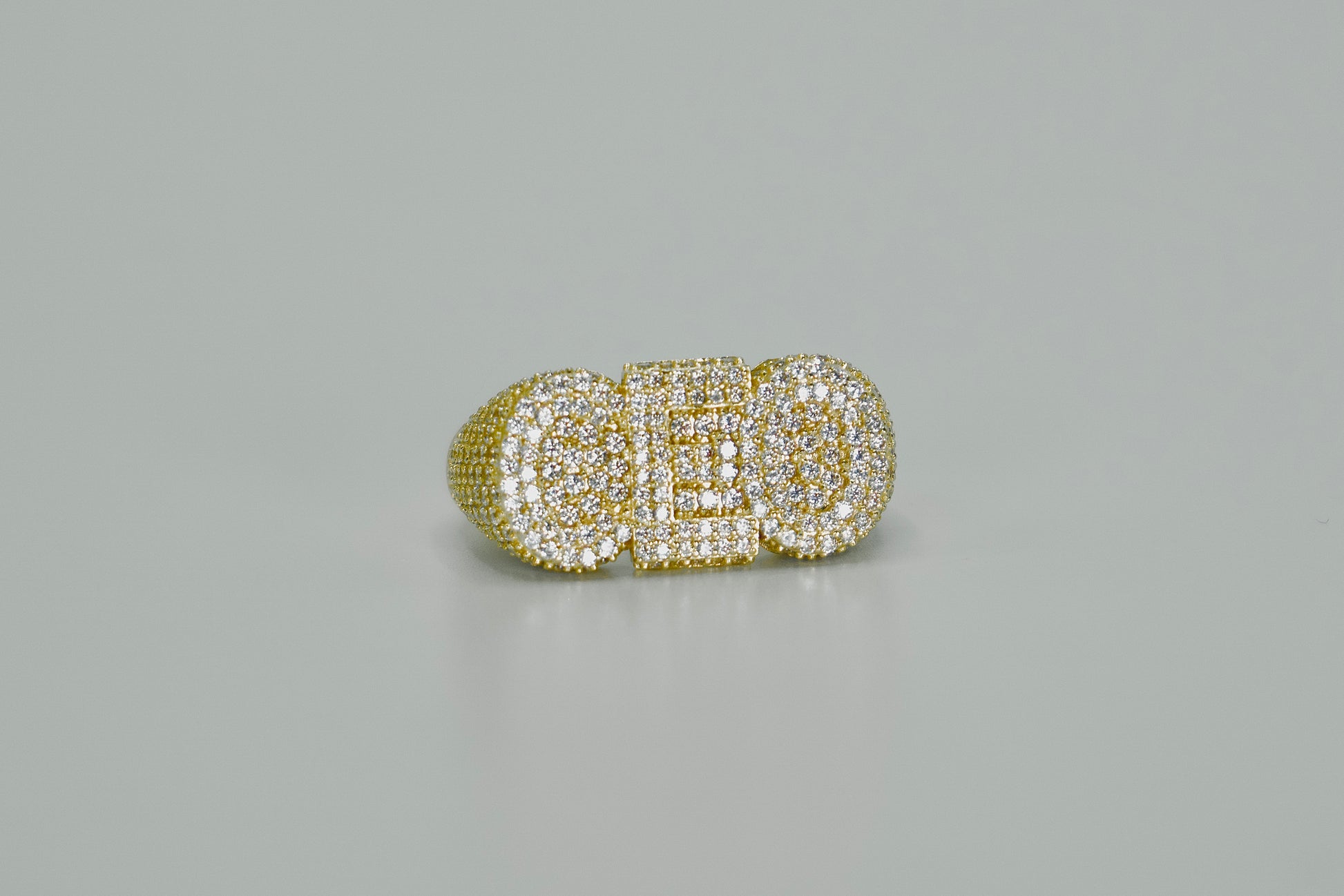14K CEO Men's Ring Cz Stones Yellow Gold