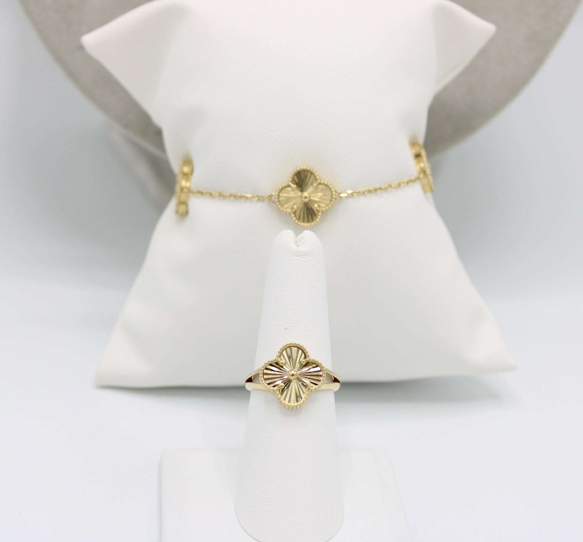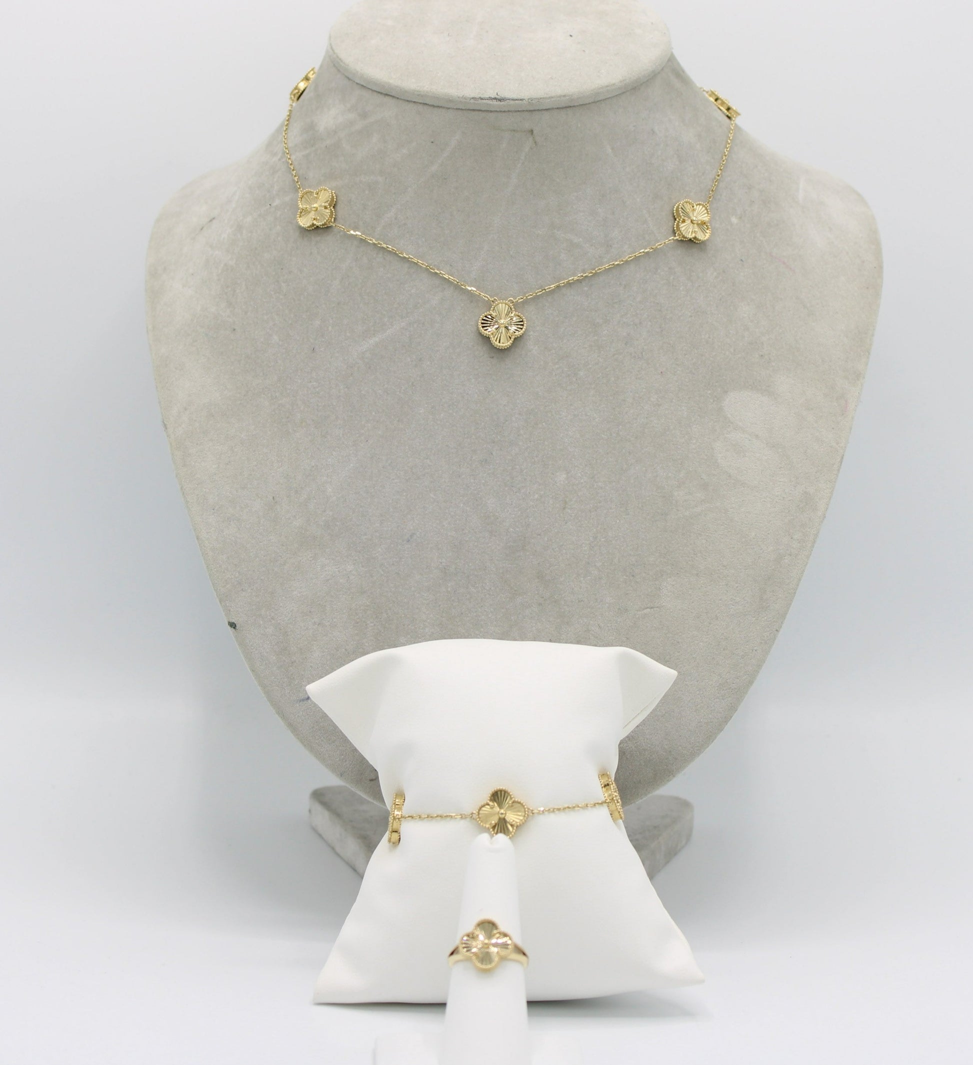 14K Fancy Set (Gold) Necklace - Bangle - Ring Yellow Gold