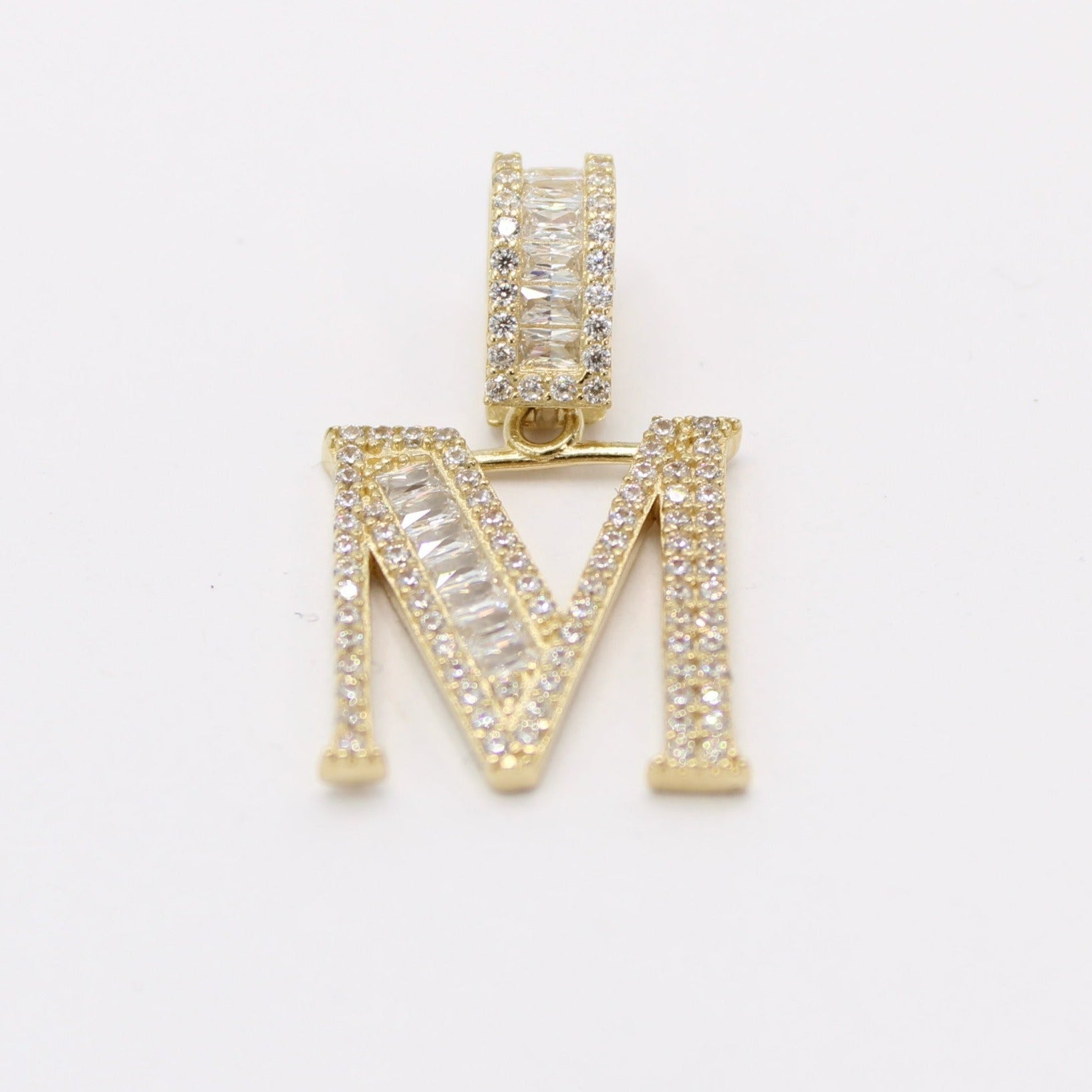 14K Initial Name ( M ) Baguette / Cz Stones Yellow Gold