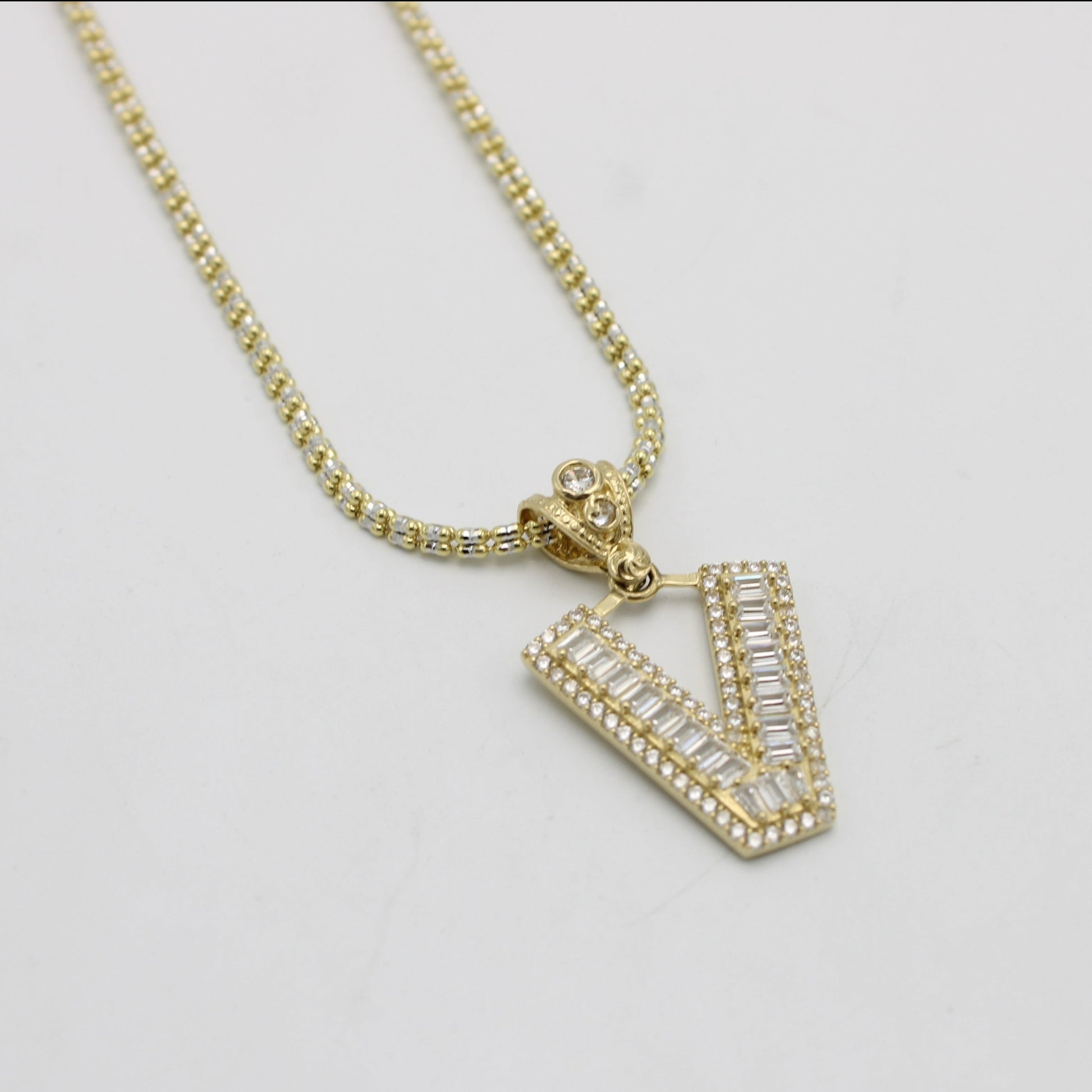 14K Initial Name (V) Cz Stones/Baguette with Ice Chain Yellow Gold
