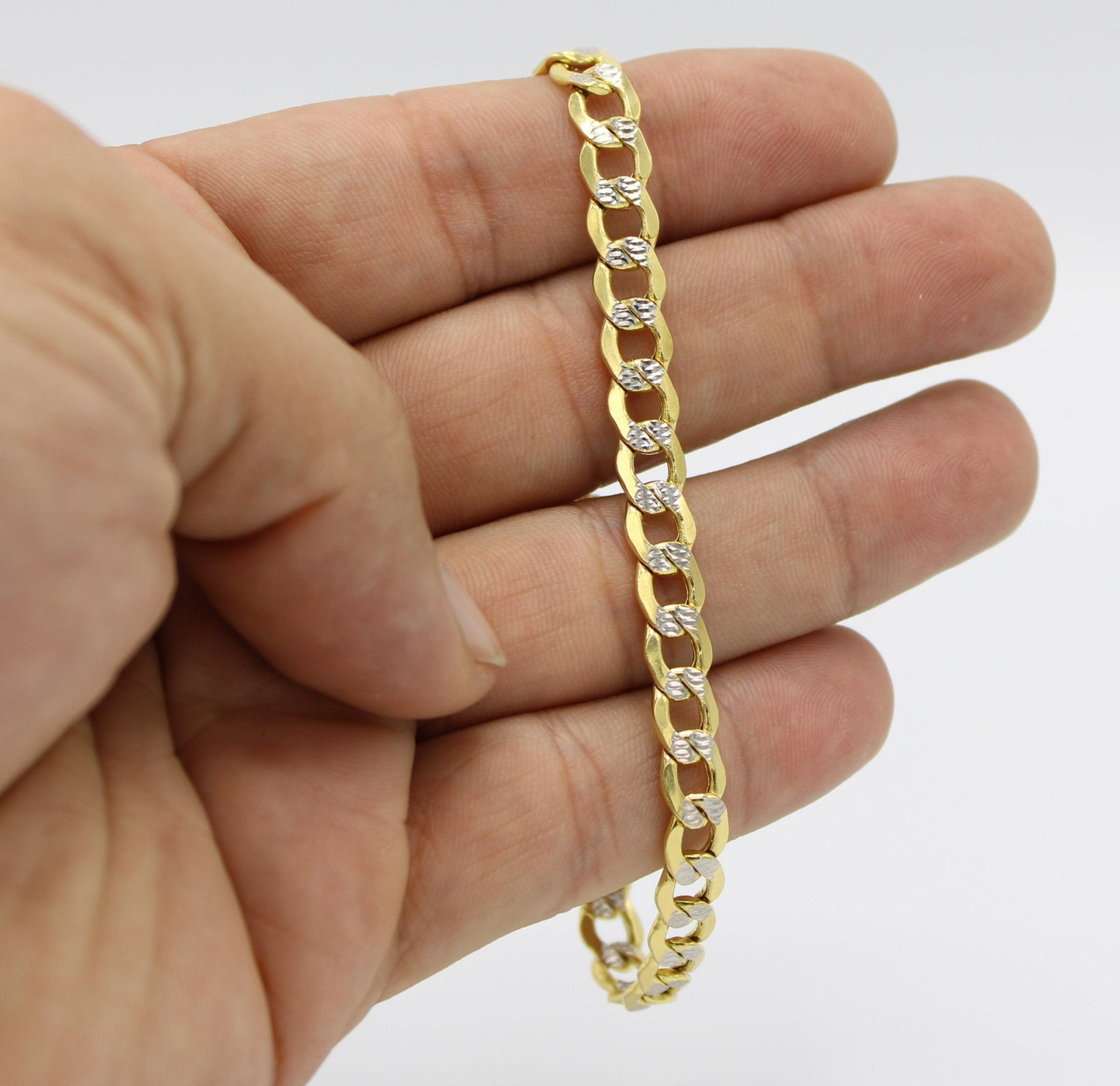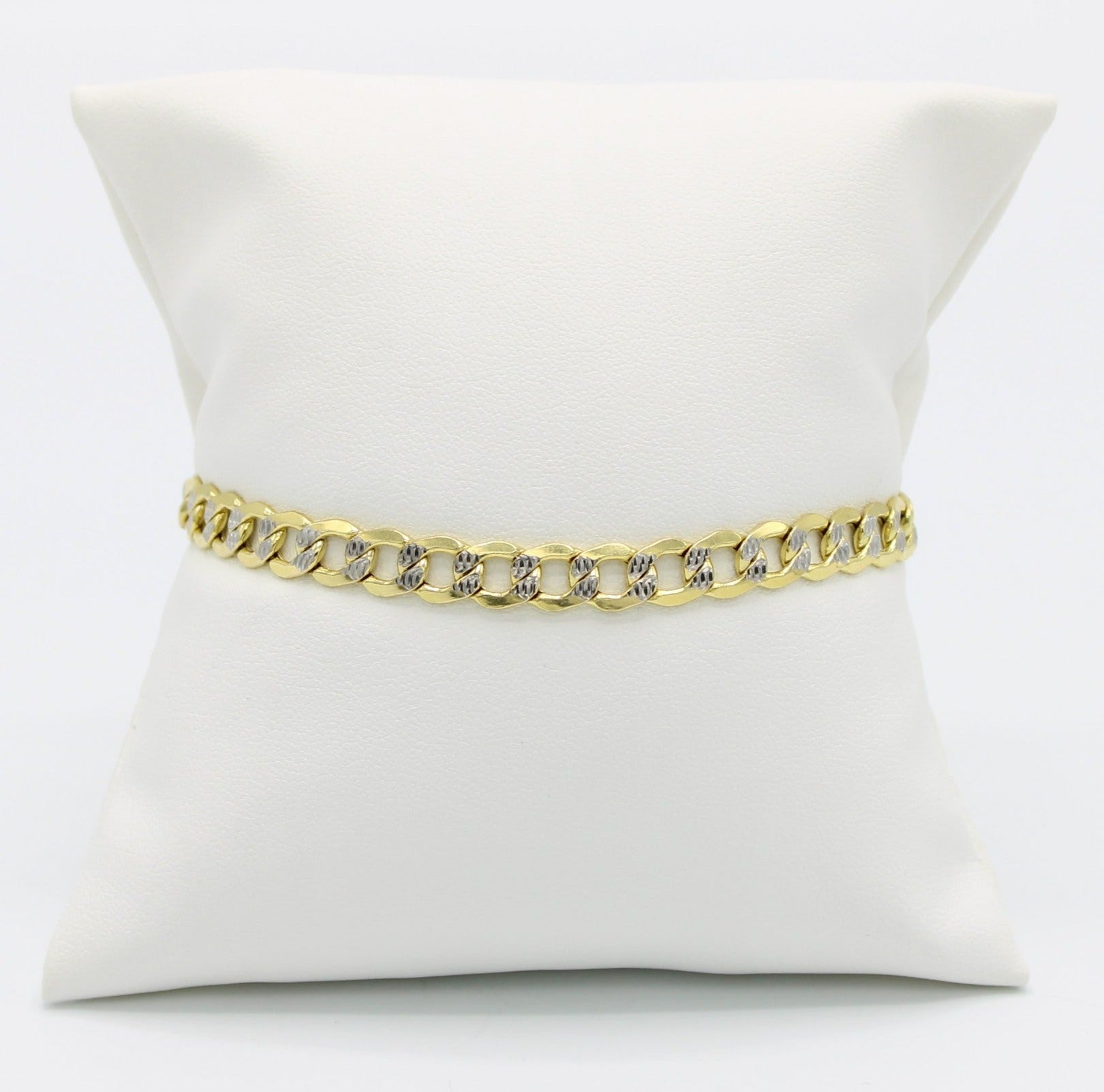 14K Semi-Solid Flat Cuban Bracelet Two Tones Yellow Gold // 7mm //