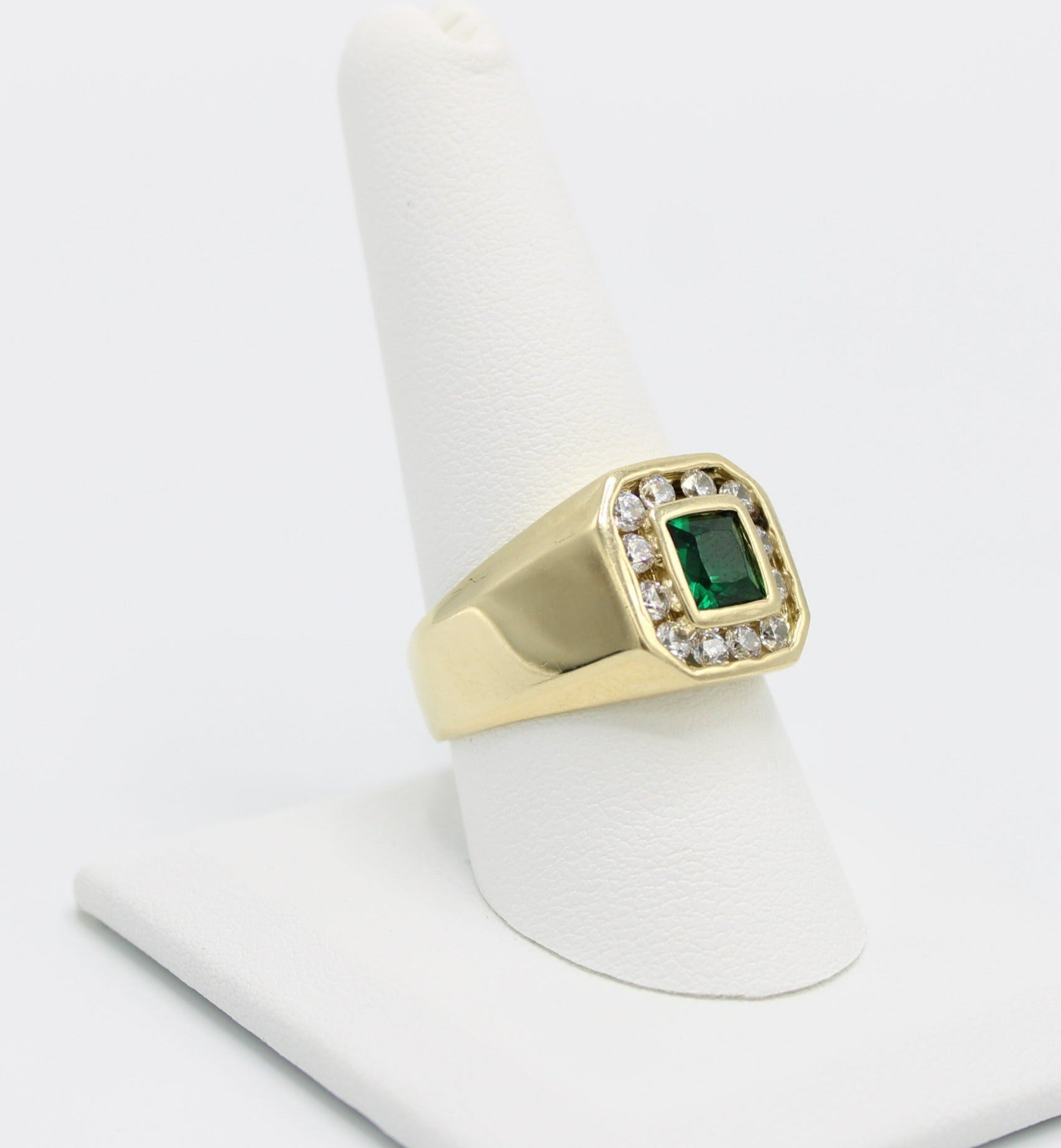 14K Men's Ring Cz Stones Gems Yellow Gold