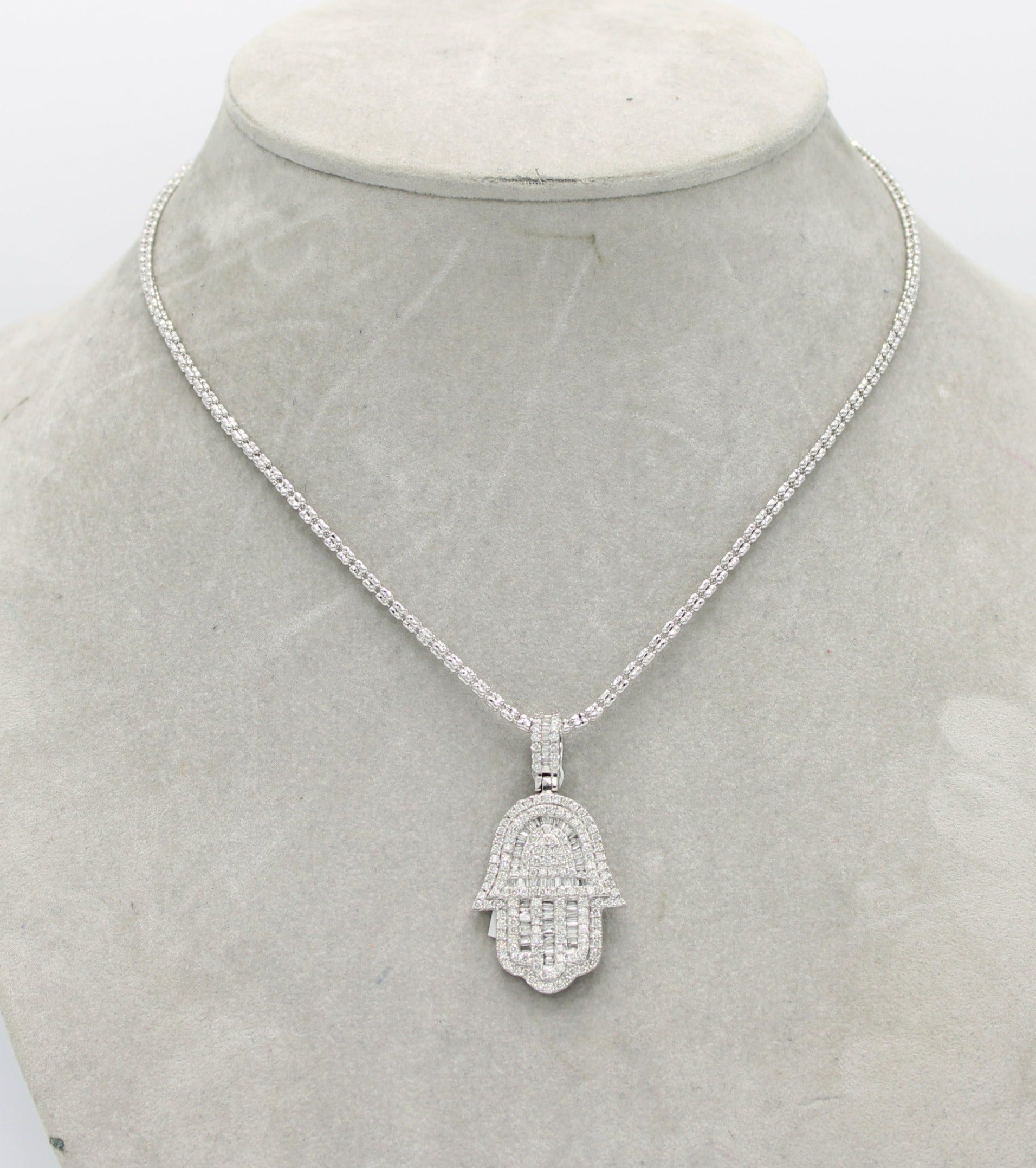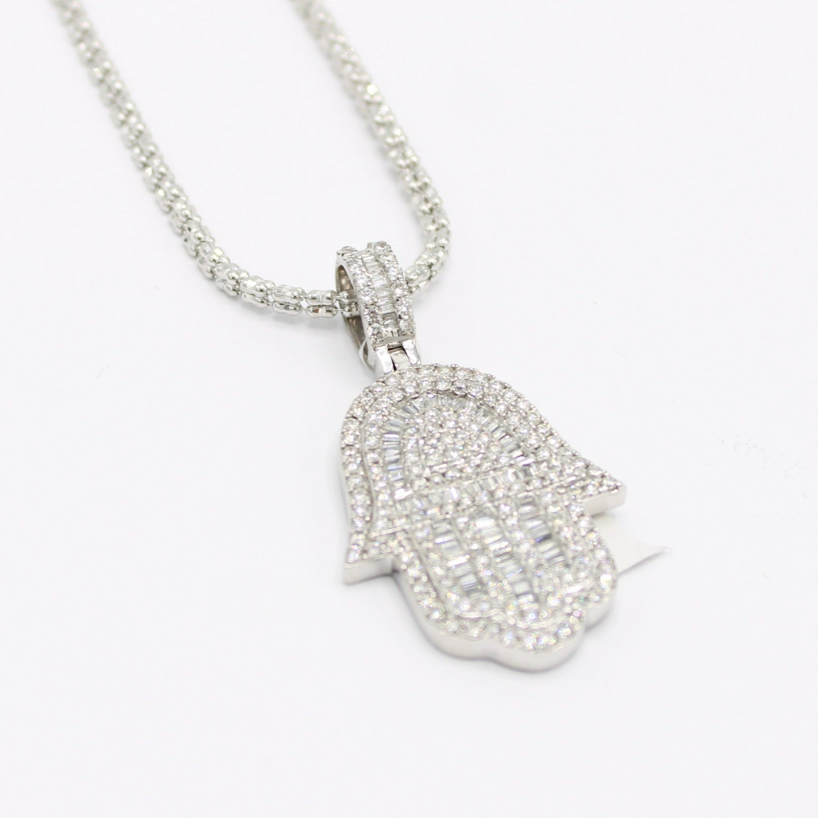 14K VS Diamond/Baguette Hamsa Pendant with Ice Chain White Gold