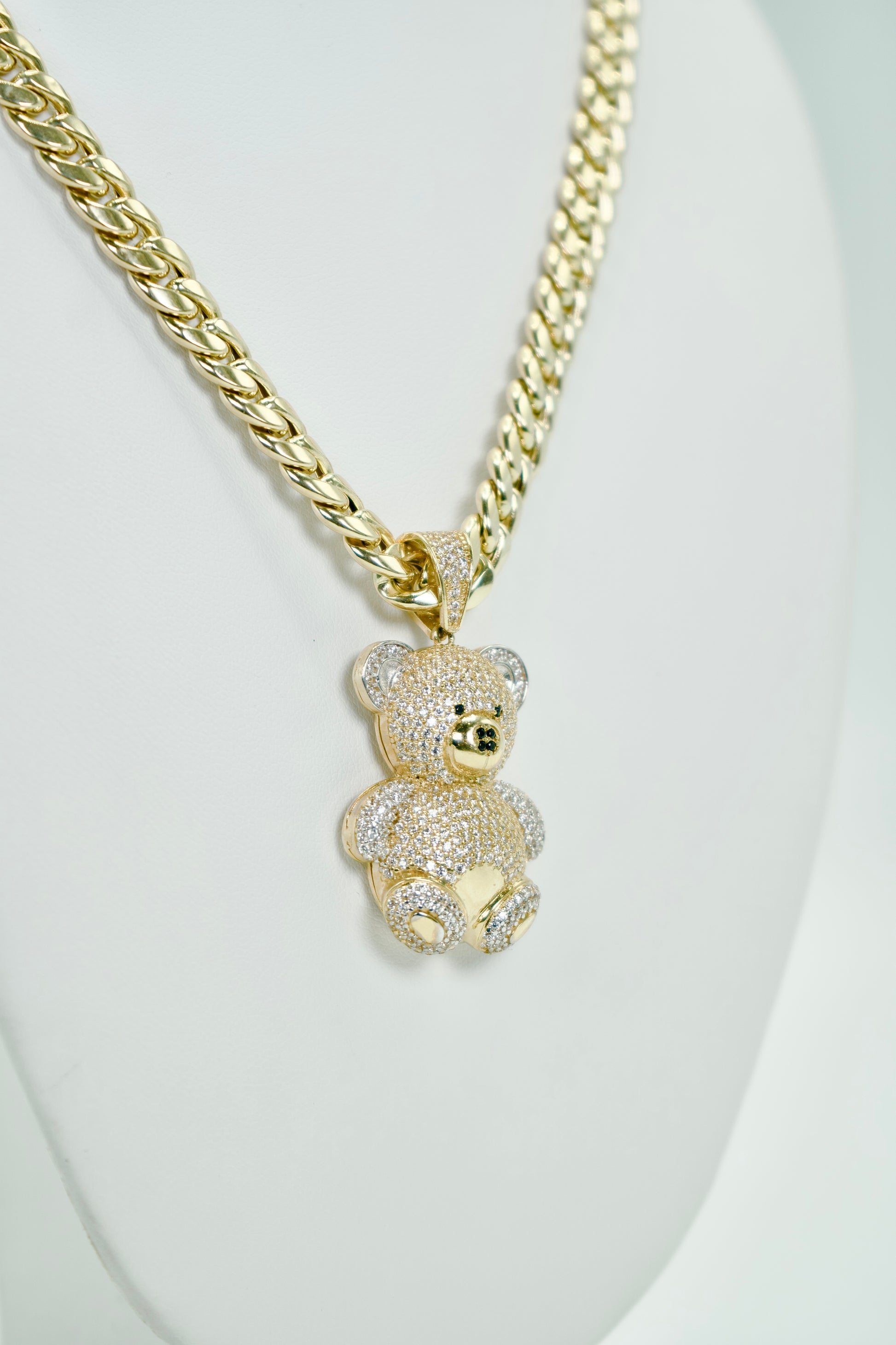 14K Tear Pendant Cz Stones With Miami Cuban Chain Yellow Gold