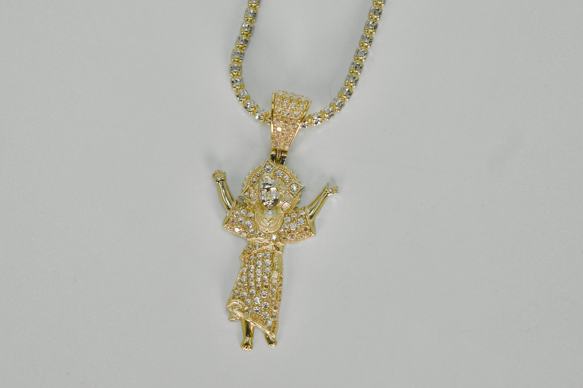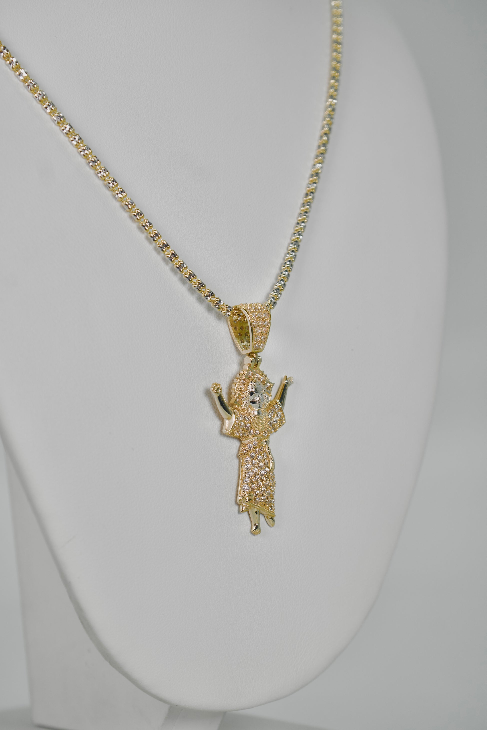 14K Divino Nino Pendant Cz Stones With Ice Chain Yellow Gold