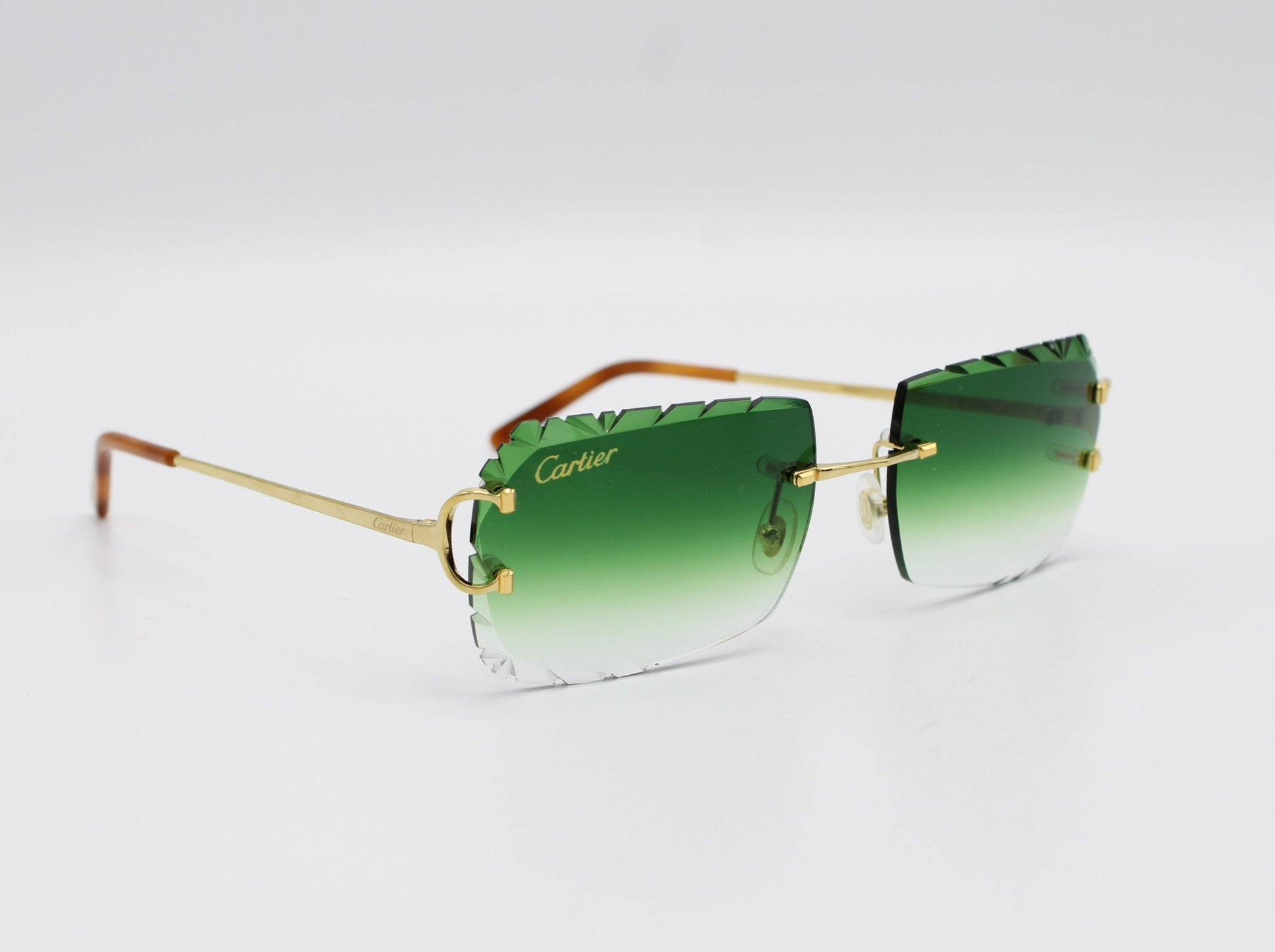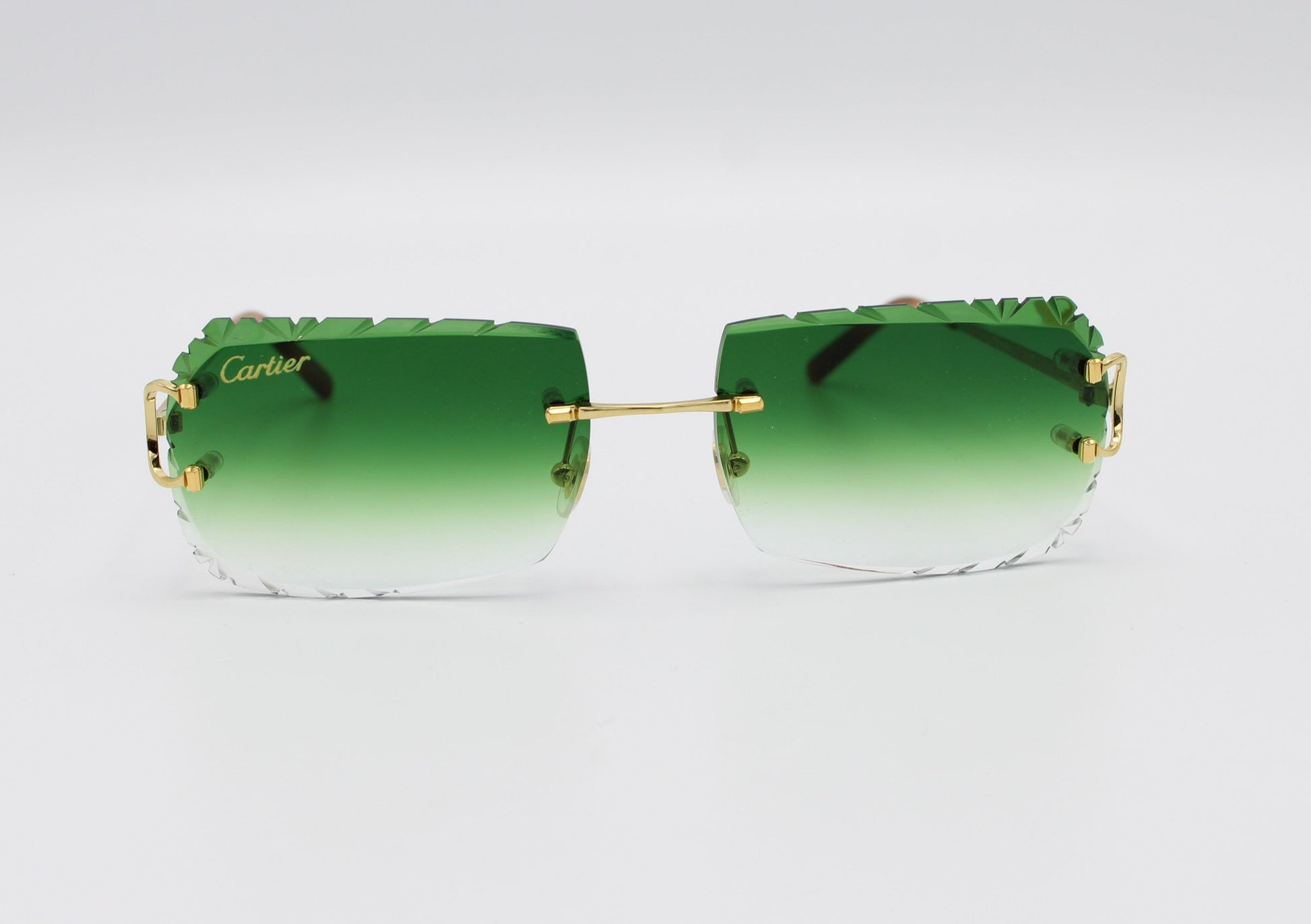 Luxury Cartier Eyewear Green Lenses Yellow Gold