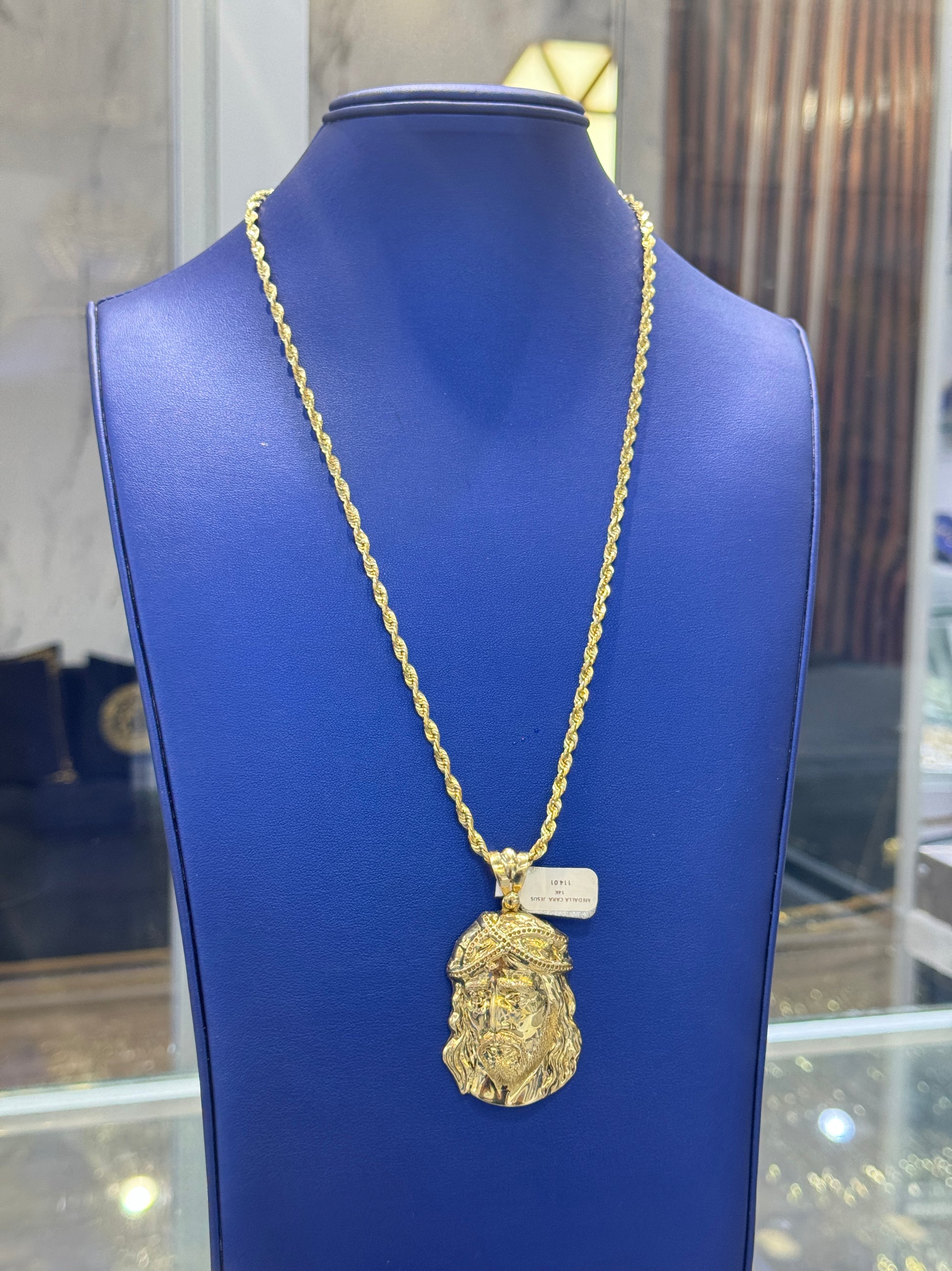 SOLID ROPE CHAIN WITH JESUS FACE PENDANT + CADENA CUBANA CON INICIAL GRATIS