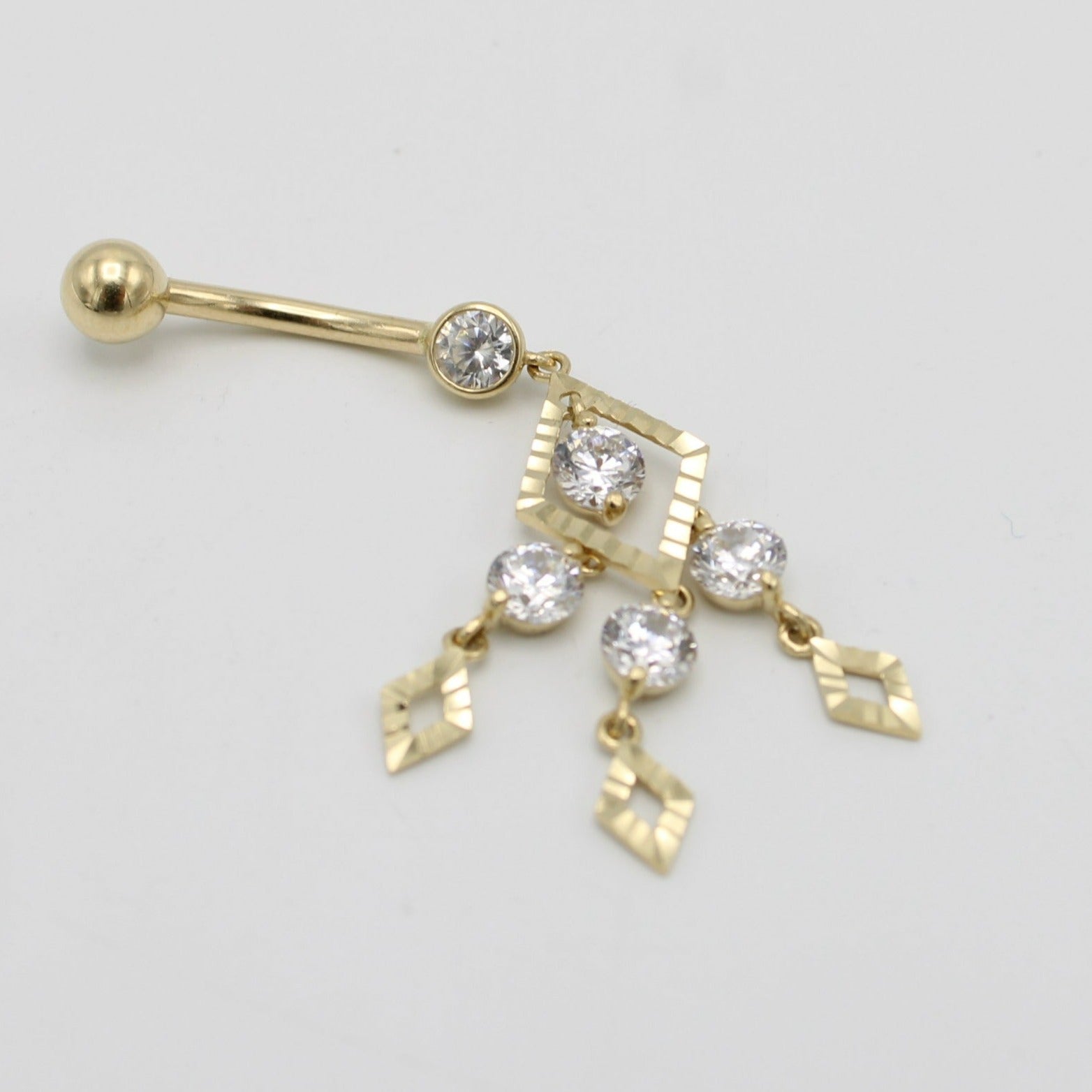 14K Belly Piercing Cz Stones Yellow Gold