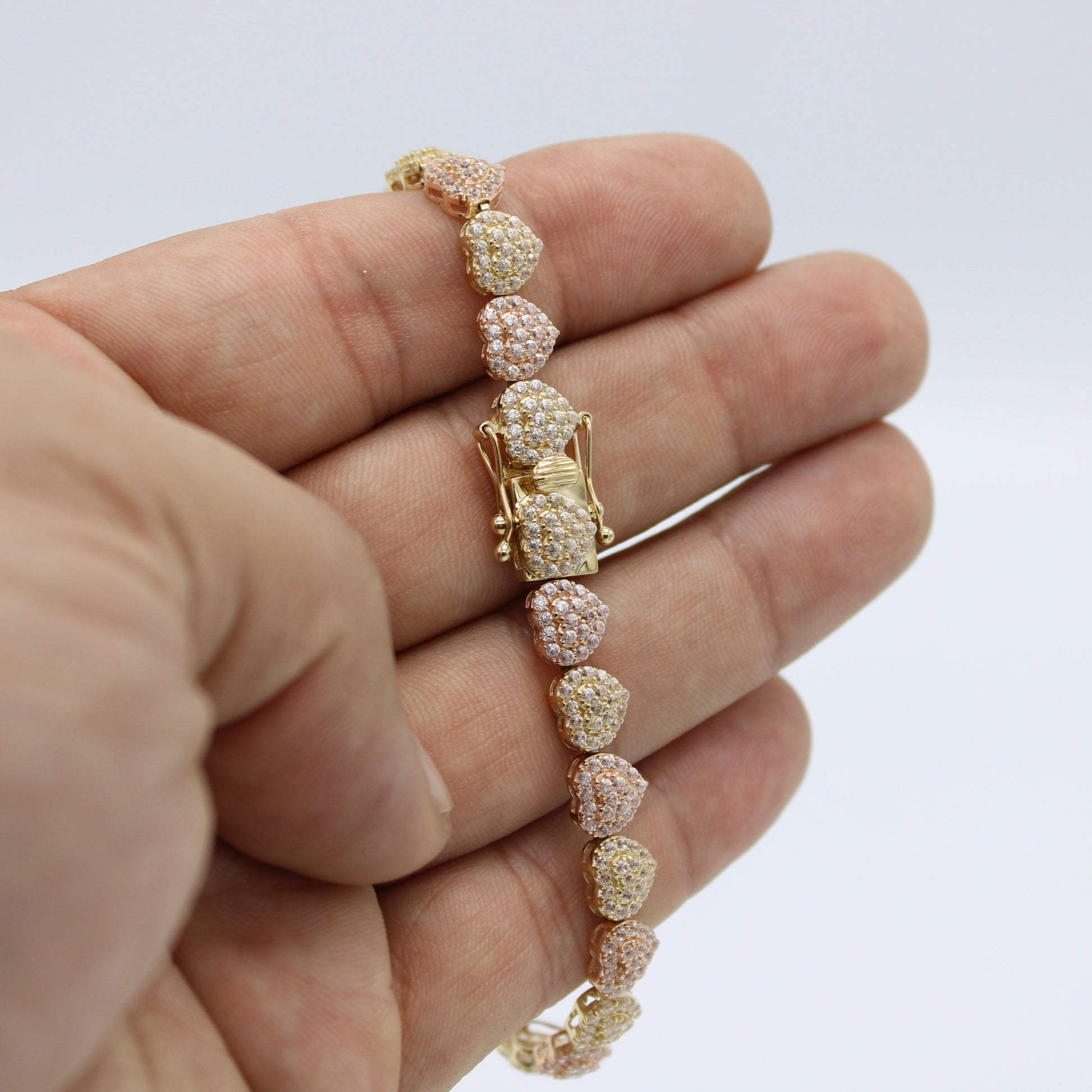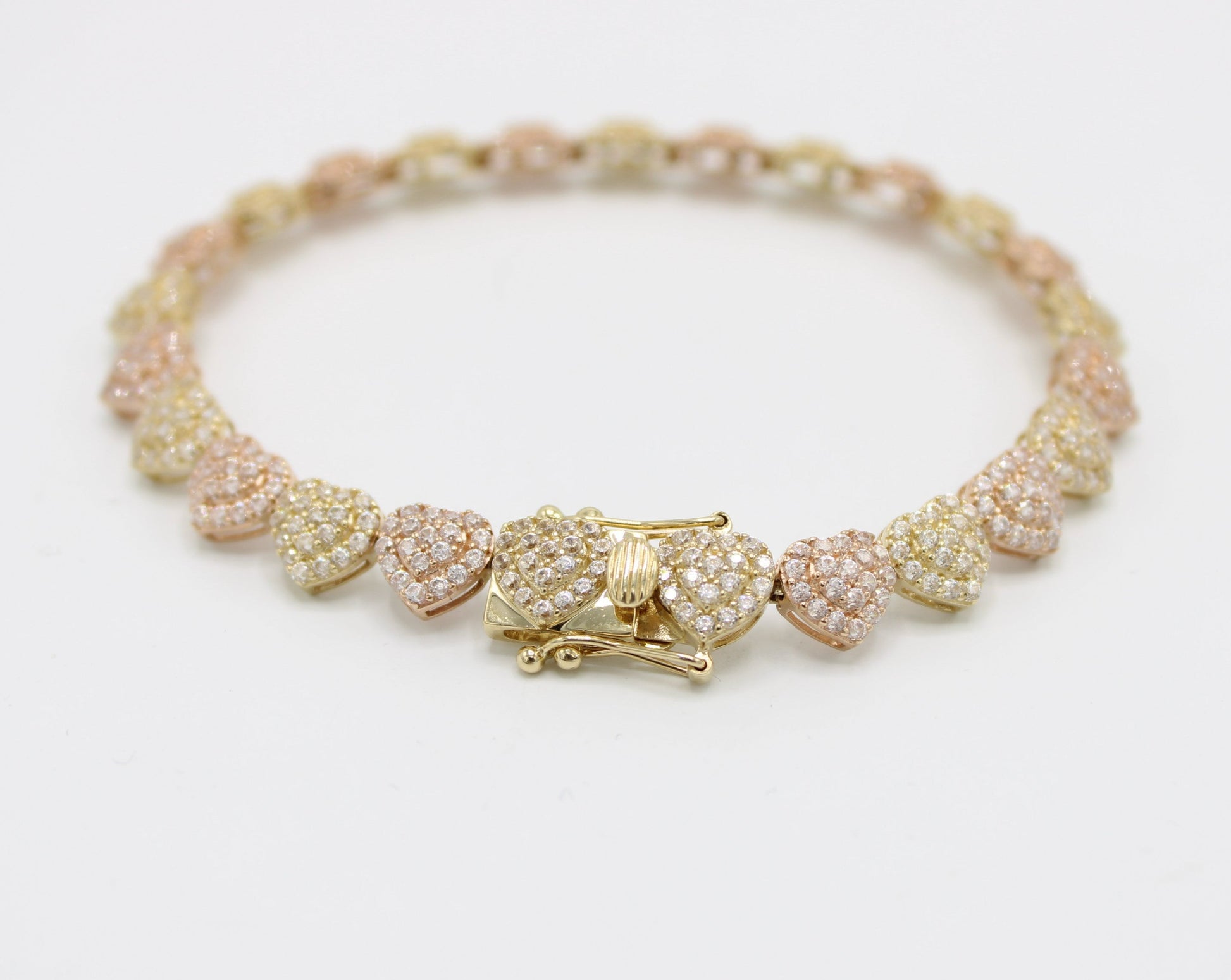 14K Fancy Heart Bracelet Cz Stones Two Tones Gold