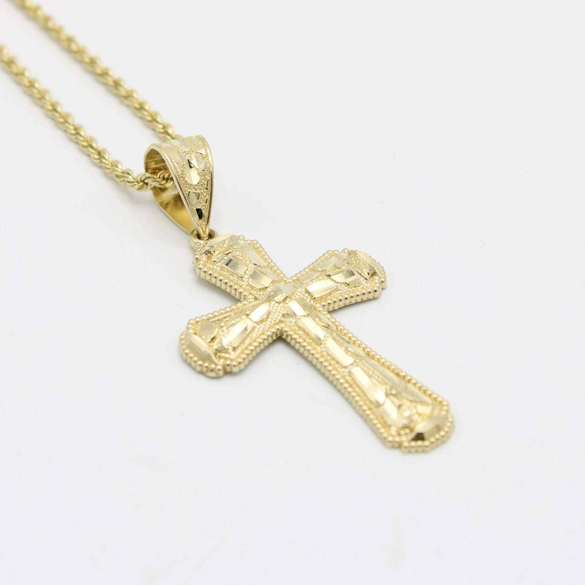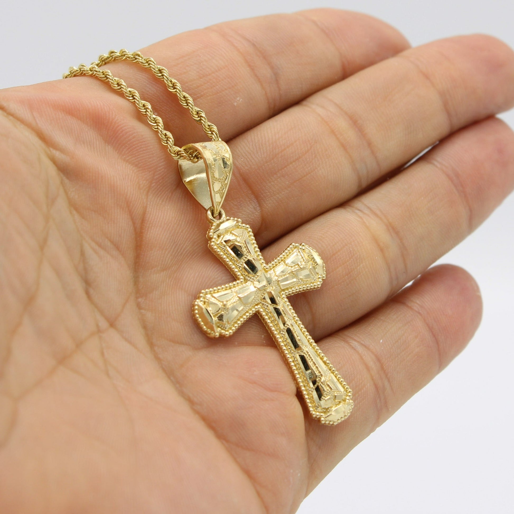 14K Cross Pendant With Rope Chain Yellow Gold