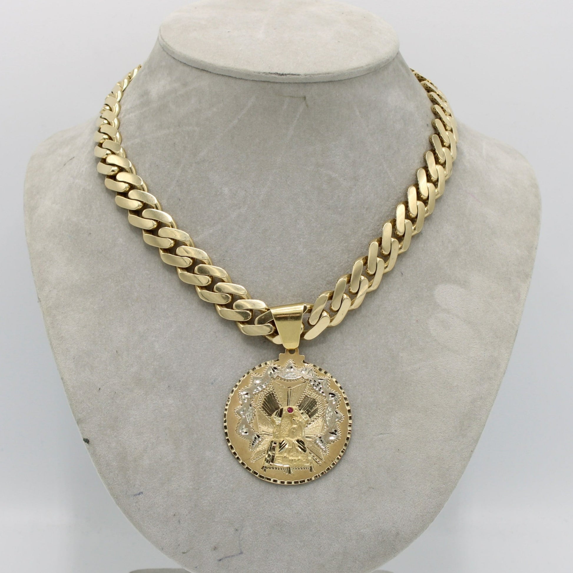 14K Virgen Mira Pendant (Red Stone) with ITTALLO Men´s Choker Yellow Gold
