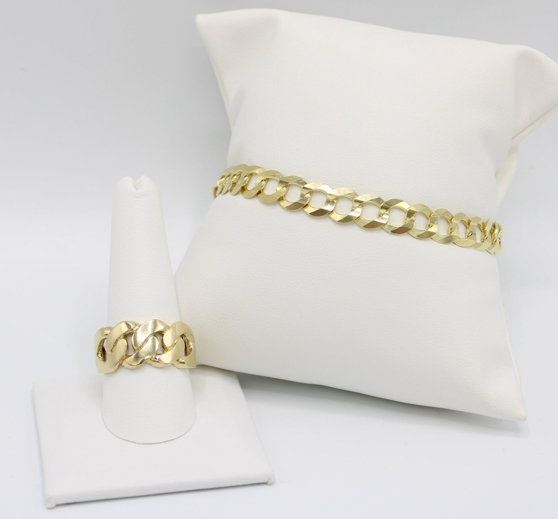 14K Men's Set Cuban Ring and Cuban Bracelet Yellow Gold