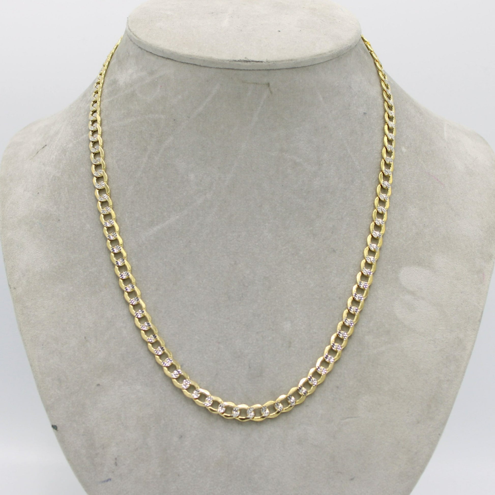 14K Semi-Solid Flat Cuban Chain Two Tones Yellow Gold