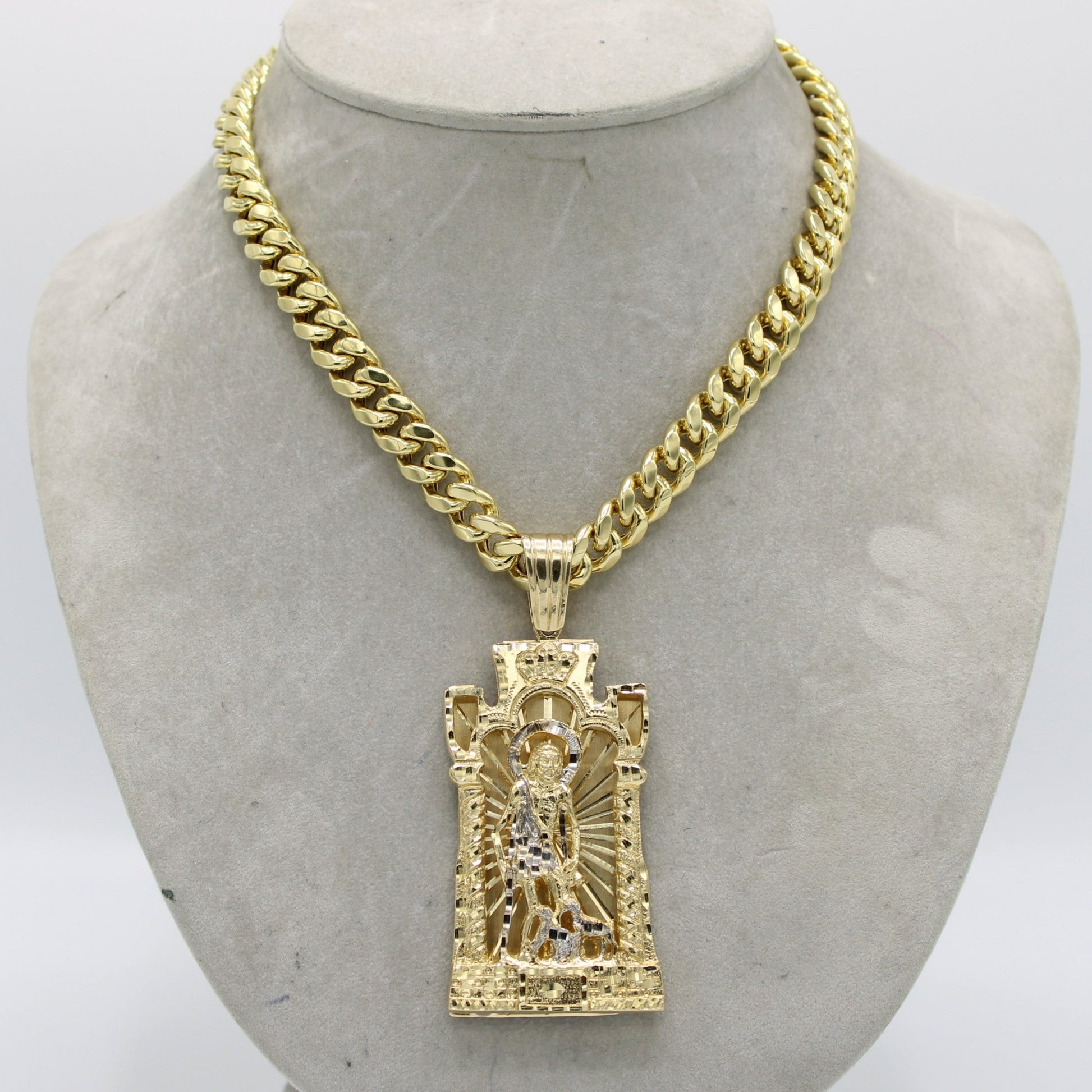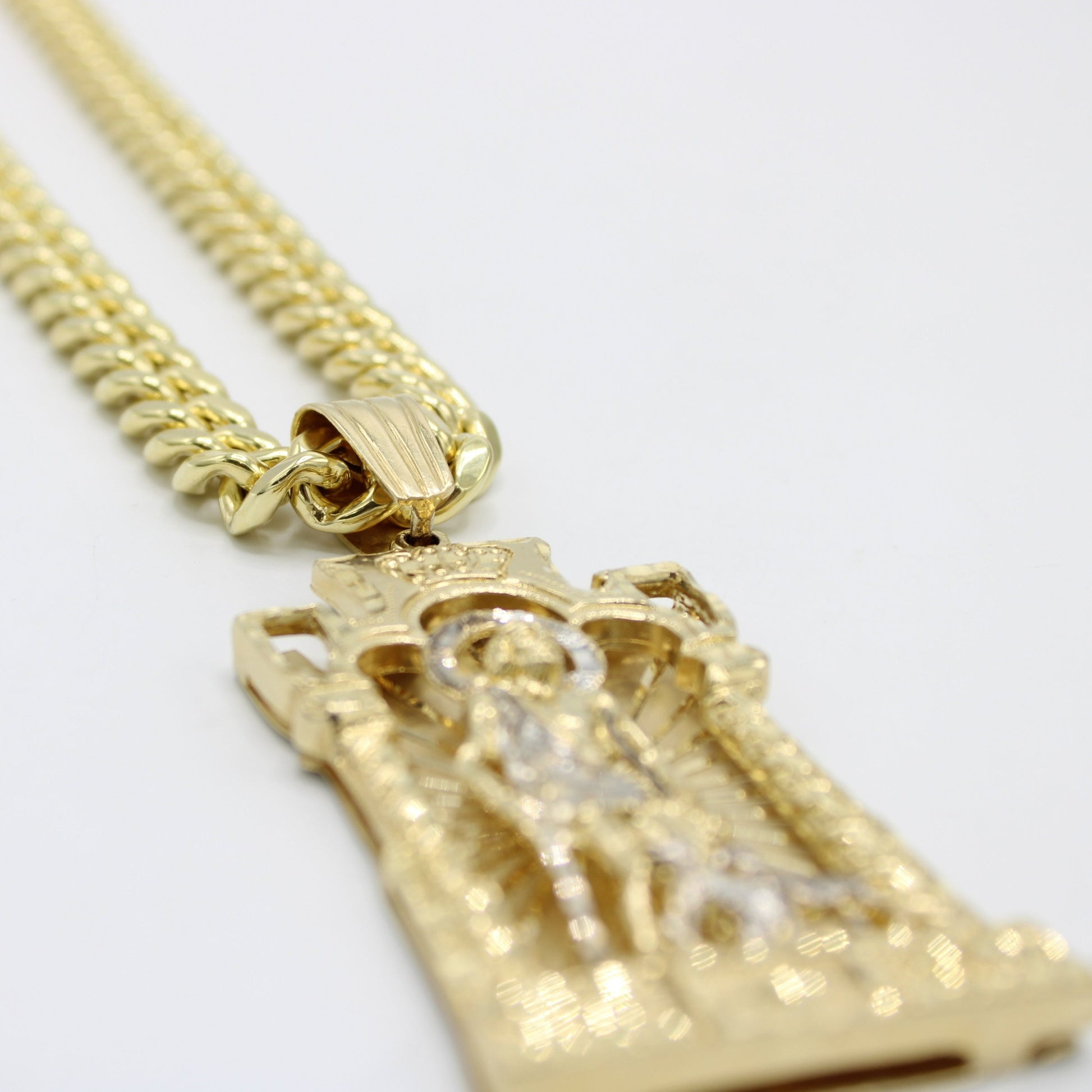 14K San Lazaro Pendant with Semi-Solid Miami Cuban Chain Yellow Gold