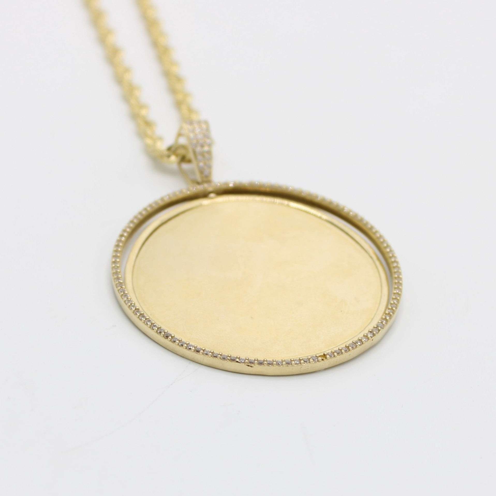 14K Doble Picture Pendant with Rope Chain Yellow Gold