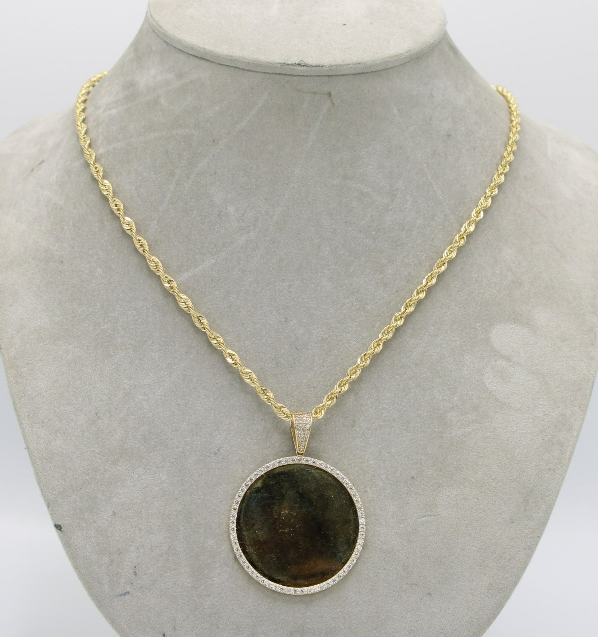 14K Chain with Pendant - This beautiful Chain is 100% real 14k yellow gold. Includes 1 year warranty. buy with confidence from Alex Diamond Joyeria.