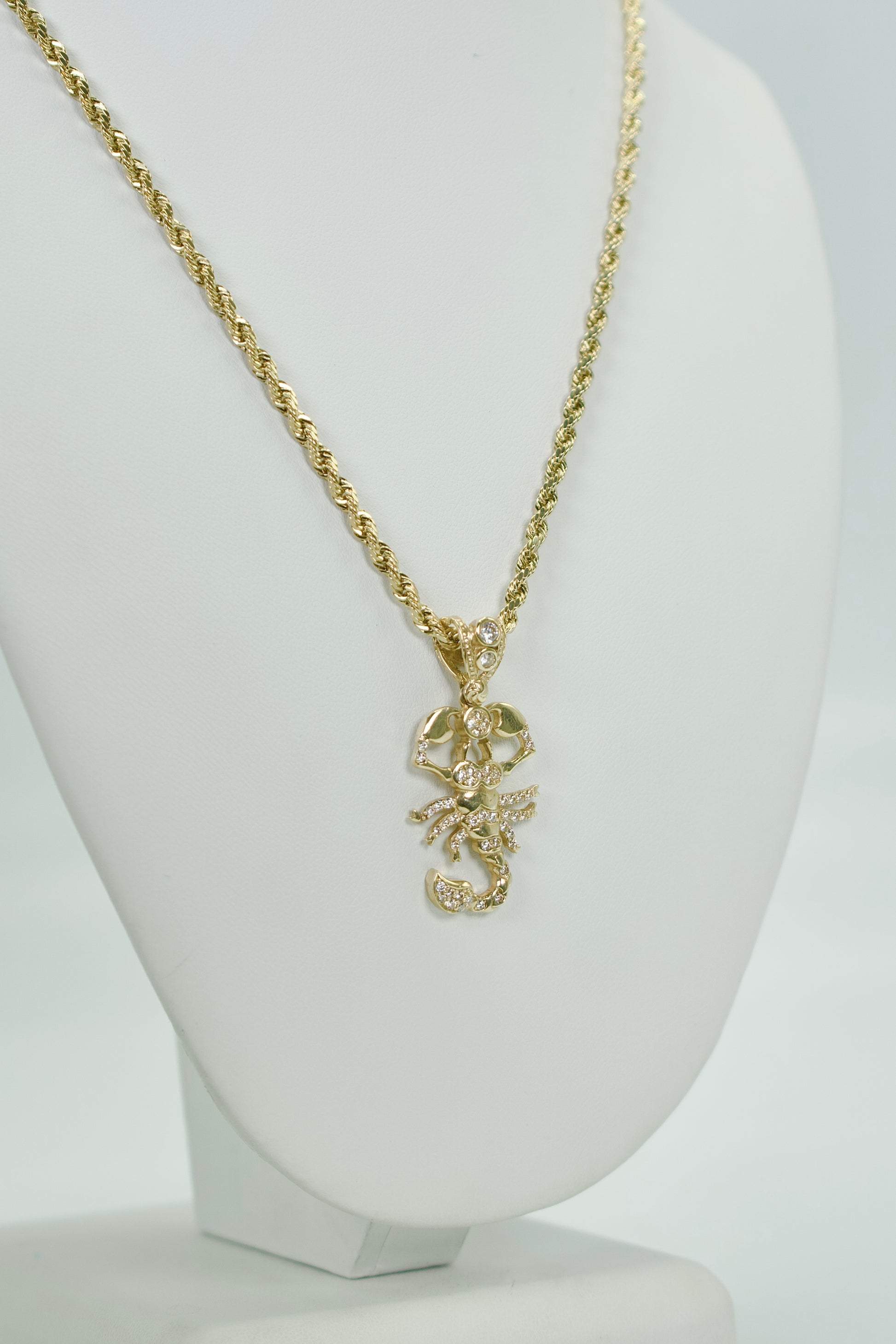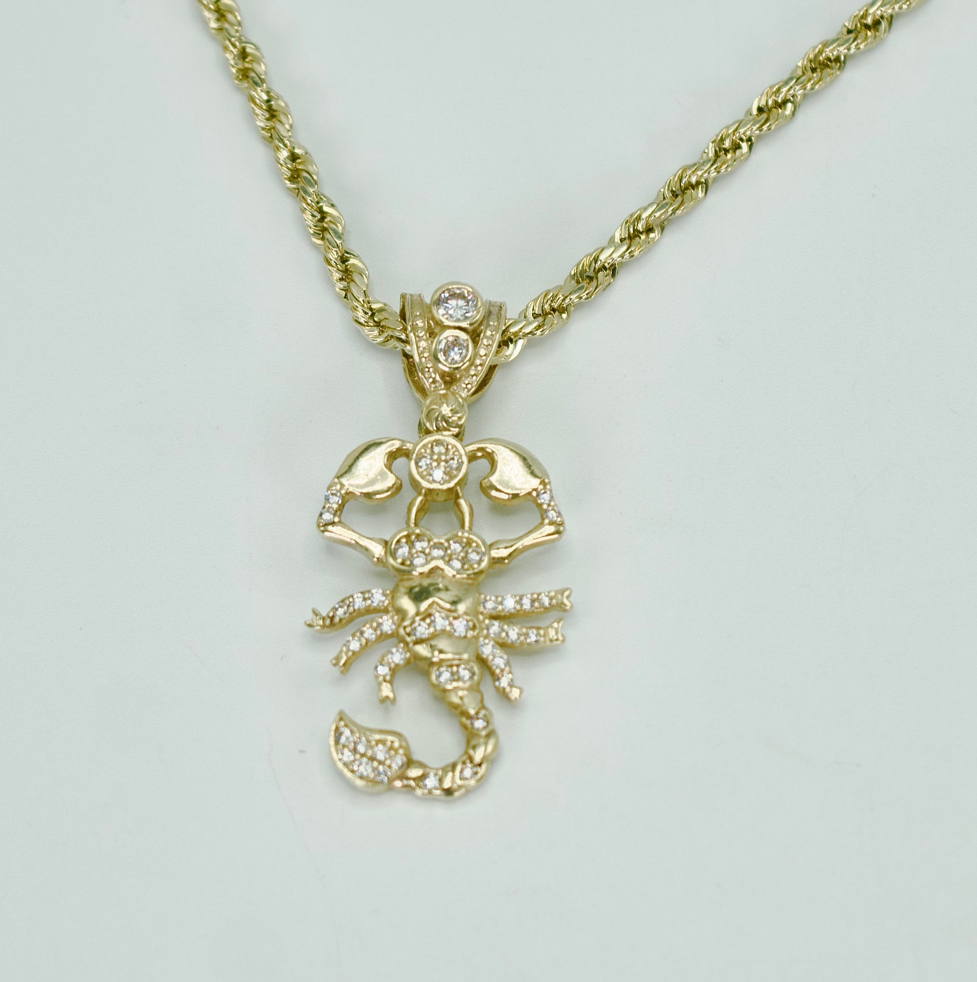 14K SCORPION Cz Pendant With Rope Chain Yellow Gold